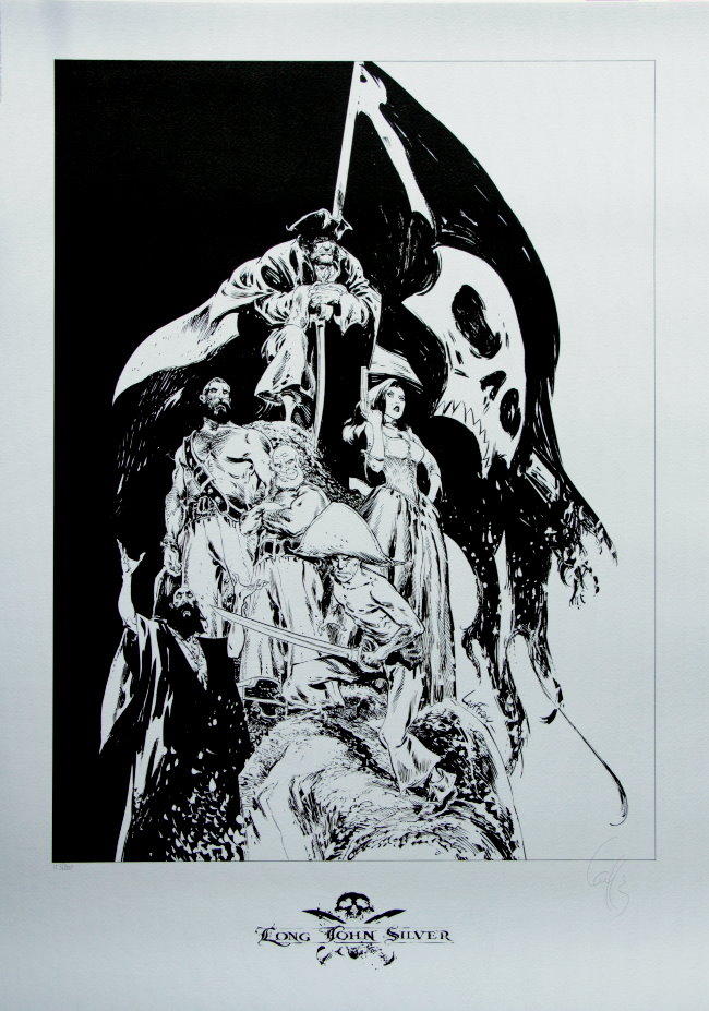 Lámina de Arte LAUFFRAY firmada y numerada : Long John Silver (Negro y Blanco)