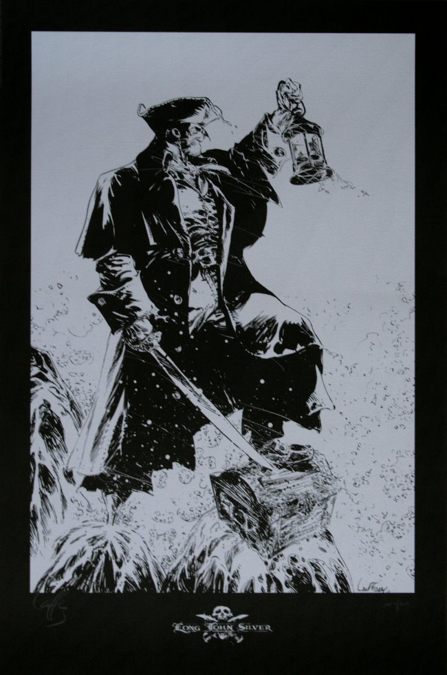 Lámina de Arte LAUFFRAY firmada y numerada : Long John Silver et la lanterne magique NB - 60 x 40 cm