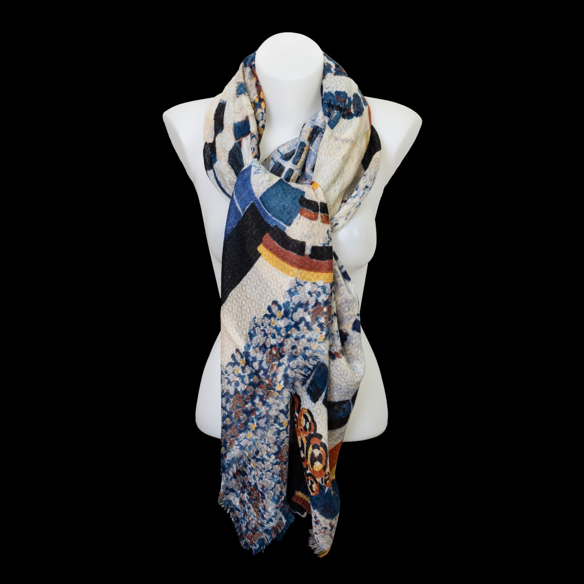 Large square made of wool and silk, inspired by the work of František Kupka: "Around a Point (1920-1930)".