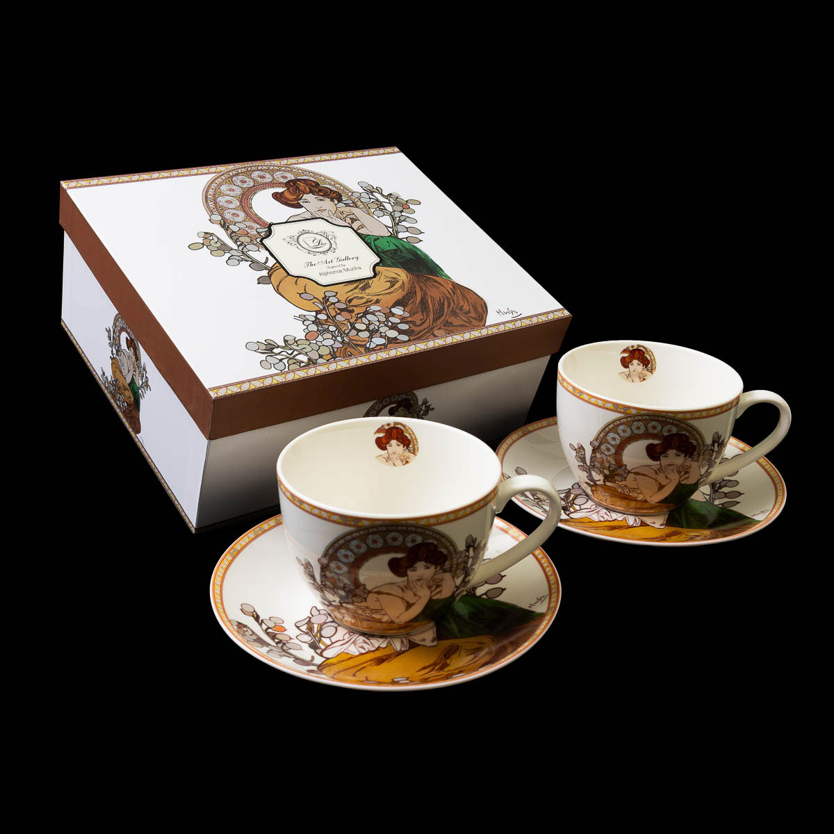 Alphonse Mucha set of 2 cups and saucer - "Topaz"