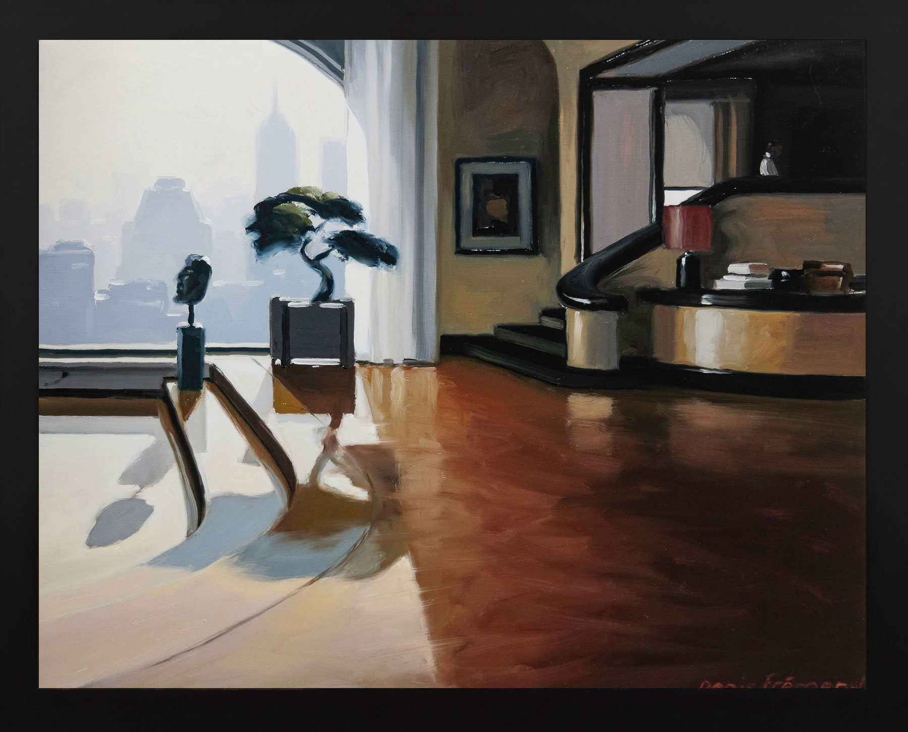 Denis Frémond, born in Le Havre into a wealthy family, received a Calvinist education. After studying at the École Boulle in Paris, he briefly turned away from painting to focus on drama before definitively returning to painting in 1976. He first explored a whimsical style, gaining recognition in the 1980s as a press illustrator and comic book author, notably for Pilote and L’Écho des savanes. In 1991, Frémond dedicated himself exclusively to painting, influenced by Johannes Vermeer, whose unique use of light inspires his work. His pieces, often compared to novels by Patrick Modiano for their familiar oddness and nostalgia, are imbued with dreamlike qualities, combining real elements to create subtly unreal scenes. Among his other notable influences are Sigmund Freud and Maurice Ravel, the latter being particularly referenced in his painting "Portrait en Gaspard de la nuit," a tribute to Ravel's famous piano triptych.