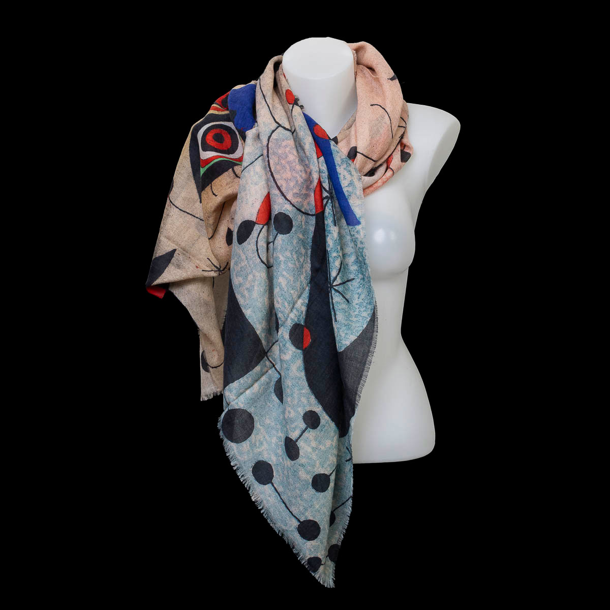 Gran pañuelo de lana y seda inspirado en la obra de Joan Miró: "Signos y constelaciones enamorados de una mujer (1941)".