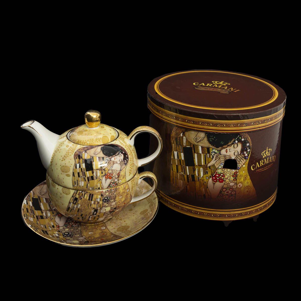 Dúo Taza y Tetera en porcelana inspirado en Gustav Klimt: "El beso"