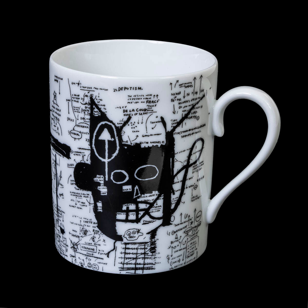 Taza de porcelana de Limoges del artista Jean-Michel Basquiat: Trumpet (1984) (movimiento Pop Art).