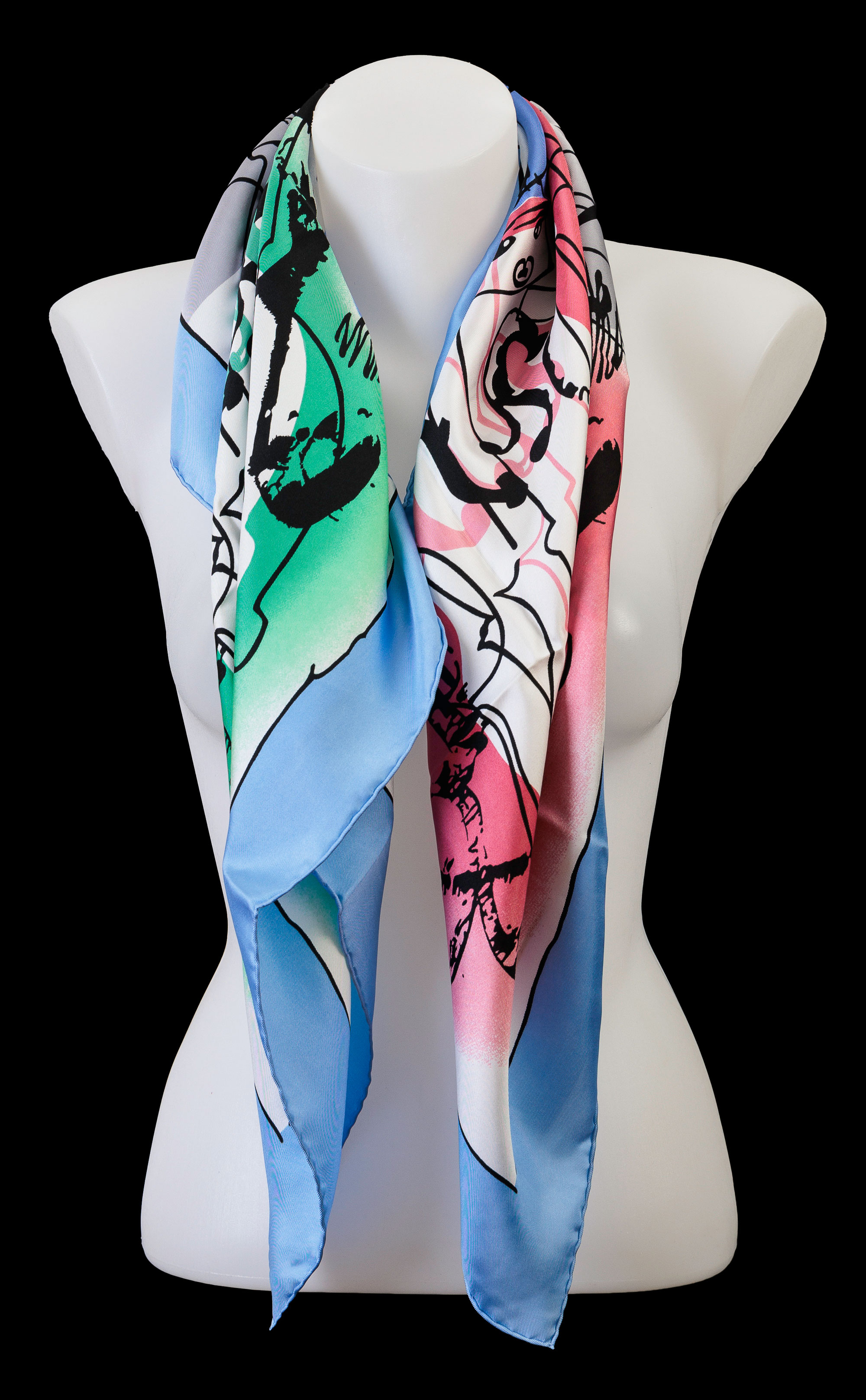 Carré 100% soie 90 x 90 cm - ARMAN : Violons (tons pastels)