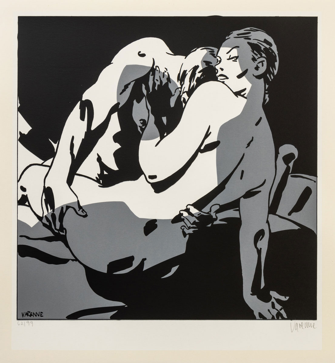 Sérigraphie signée numérotée sur 99 exemplaires de Alex Varenne : Corps à Corps (Couple n°3)