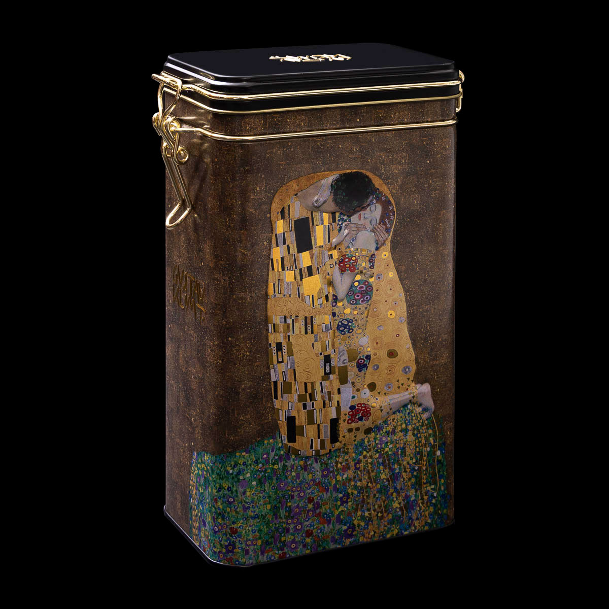 Scatola ermetica con motivi Art Nouveau tratti dall'opera più famosa di Gustav Klimt: "Il bacio".