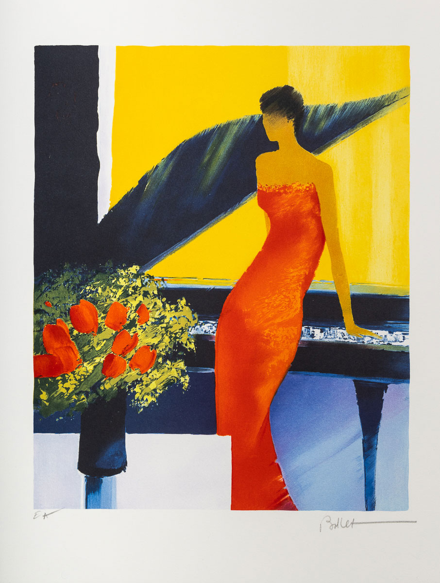 Litografía original firmada y numerada - Emile BELLET - El piano