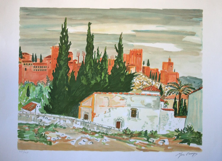 Litografía original firmada y numerada - Yves BRAYER - Las murallas de Granada