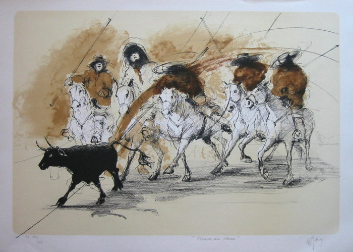 Litografia originale firmata e numerata - Jean-Marie GUINY - Ferrade aux plaines