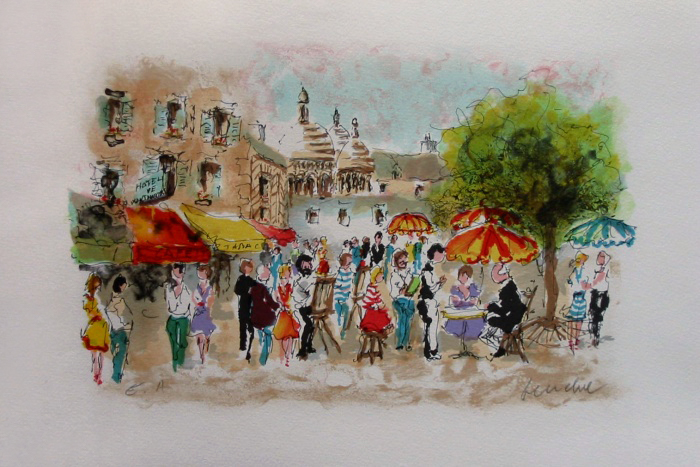 Litografia originale firmata e numerata - Urbain HUCHET - La Place du Tertre