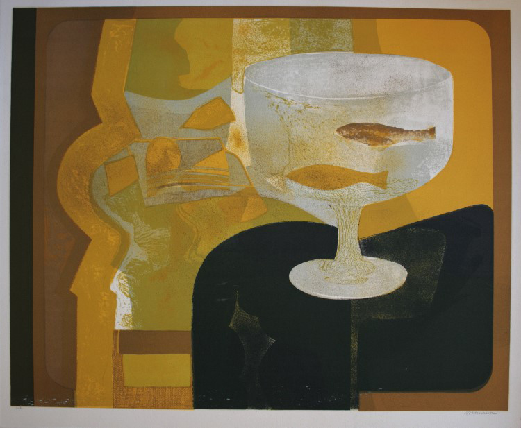 Litografía original firmada y numerada - André MINAUX - Bodegón a los dos peces