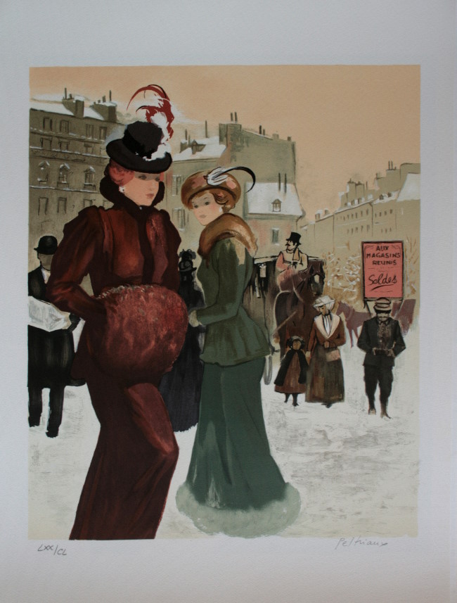 Litografía original firmada y numerada - Bernard PELTRIAUX - Elegantes en invierno