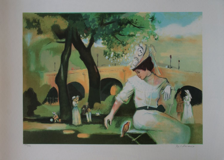 Litografía original firmada y numerada - Bernard PELTRIAUX - Encuentro al parque