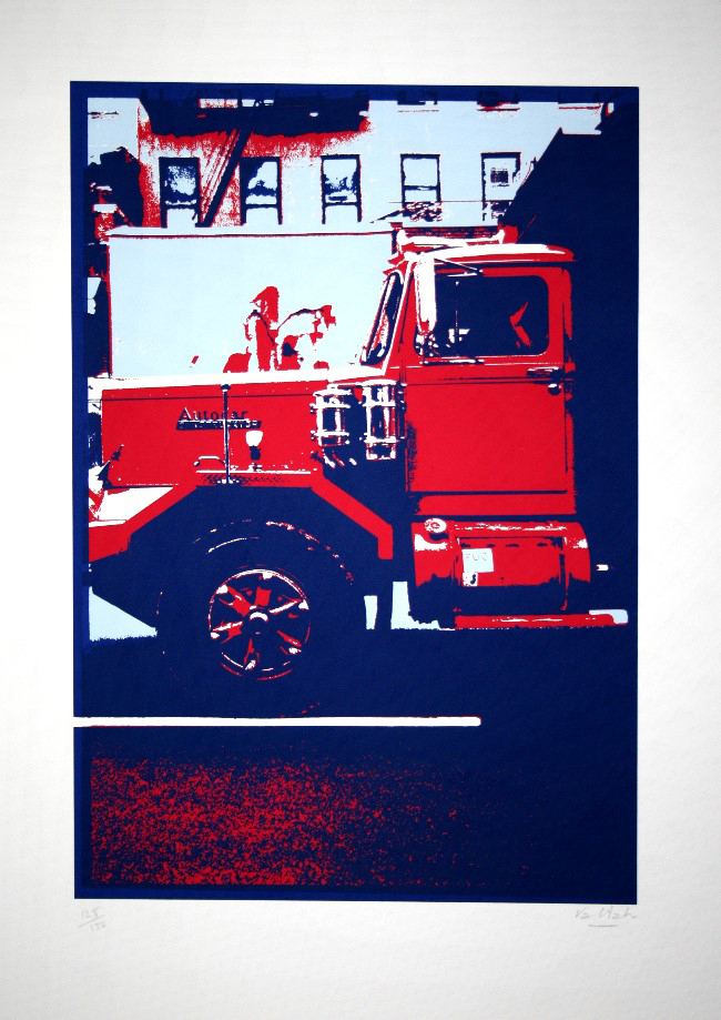 Original Serigraph signed and numbered Alain VALTAT - Red truck