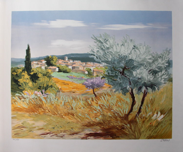 Litografia originale firmata e numerata - Victor ZAROU : Primavera a Lorgues